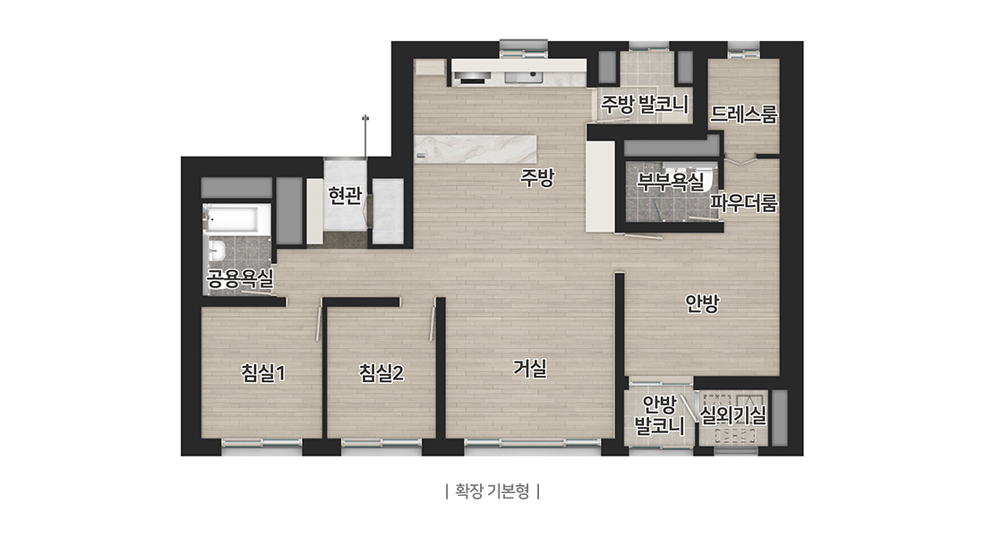※ 상기CG는 소비자 이해를 돕기위한 확장옵션형으로 반영되어있으며, 반드시 견본주택 방문하여 확인하시기 바랍니다.