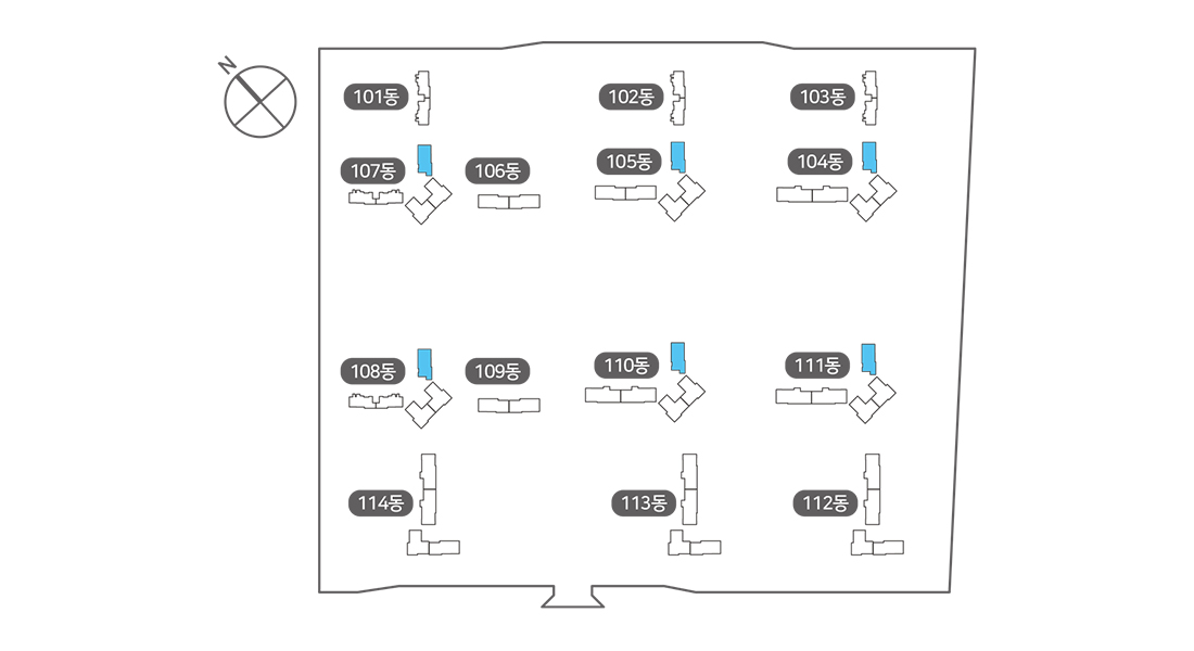 ※ 평면도의 배치구조는 호라인에 따라 대칭될 수 있으며, 벽체두께는 구조설계상 층 높이에 따라 다를 수 있습니다.